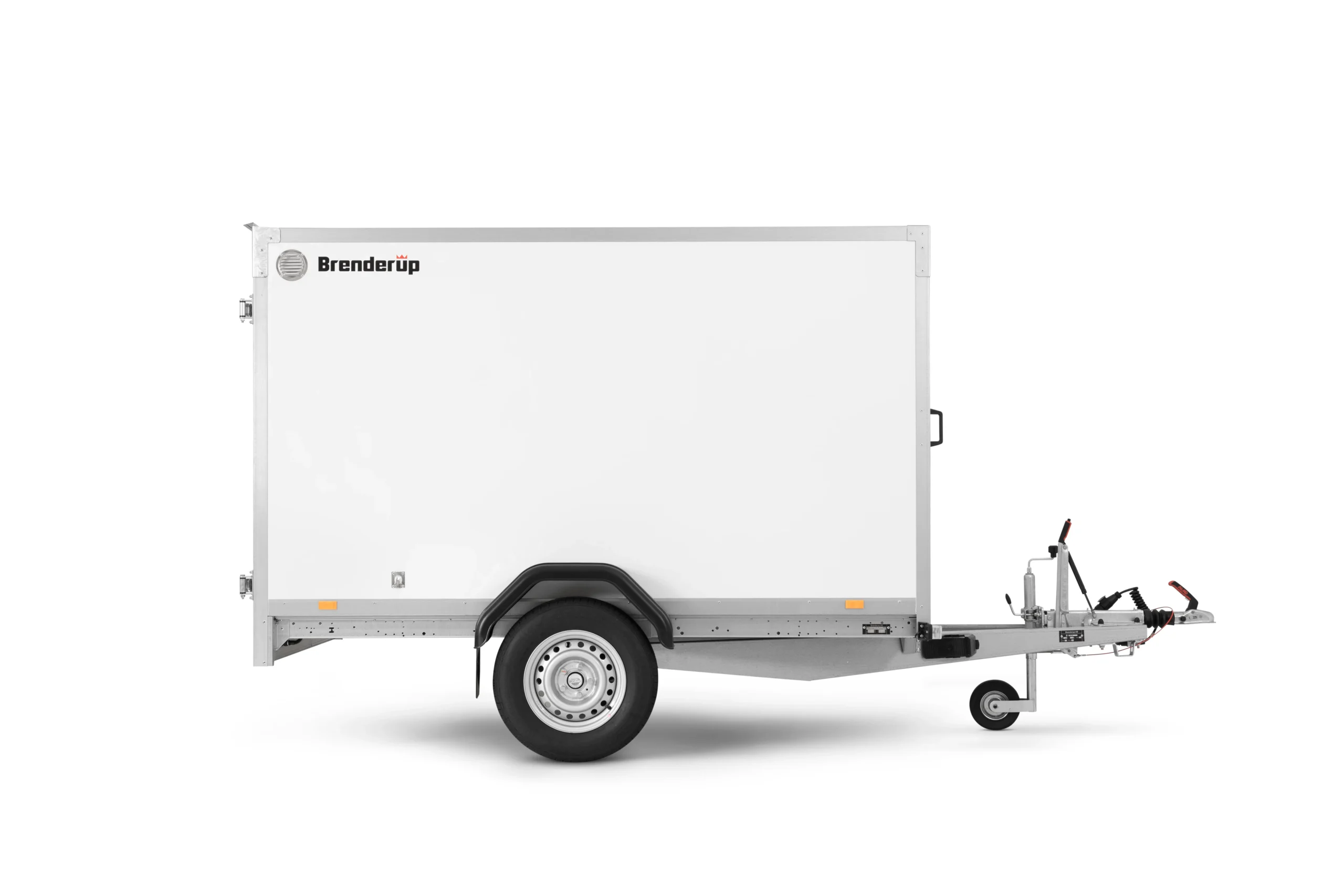 Gebrauchter Kofferanhänger der Marke Brenderup, Modell CD260WB 1300 aus der CargoDynamic-Serie. Speziell entwickelt für professionelle Anwender sowie für den Einsatz mit Elektrofahrzeugen. Der Anhänger eignet sich ideal für den sicheren, verschlossenen und wettergeschützten Transport von Waren und Ausrüstung.